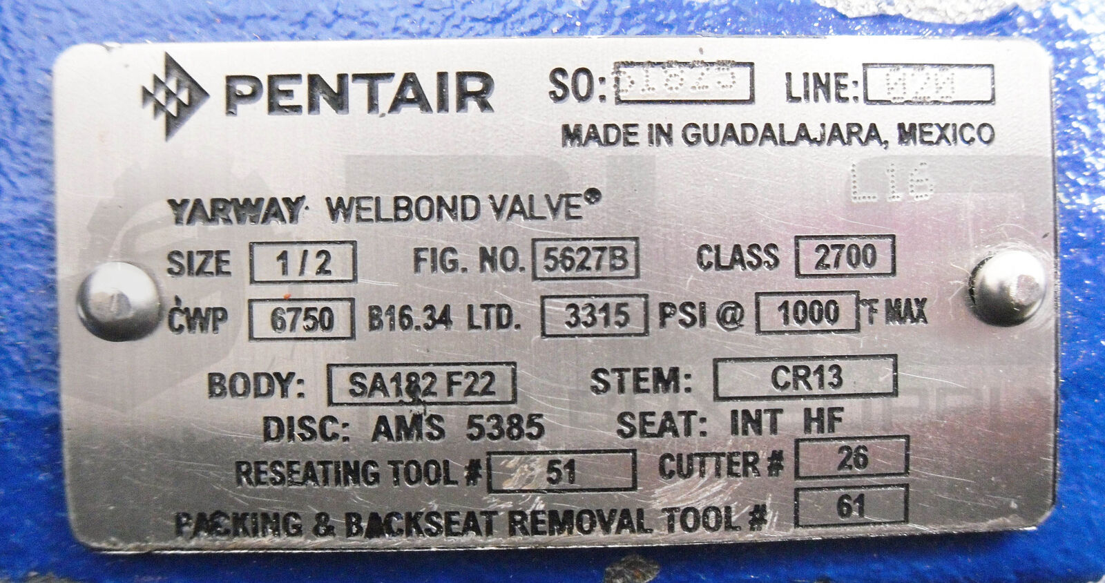 NEW PENTAIR YARWAY 5627B WELBOND VALVE 1/2" 3315PSI 1000DEG F SA182F22