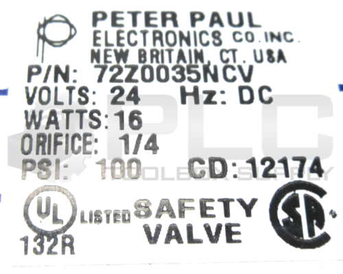 • NEW PETER PAUL 72Z0035NCV SOLENOID VALVE 24V 18W