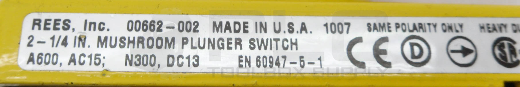 NEW REES 00662-002 PLUNGER SWITCH MUSHROOM RED/YELLOW 2-1/4″
