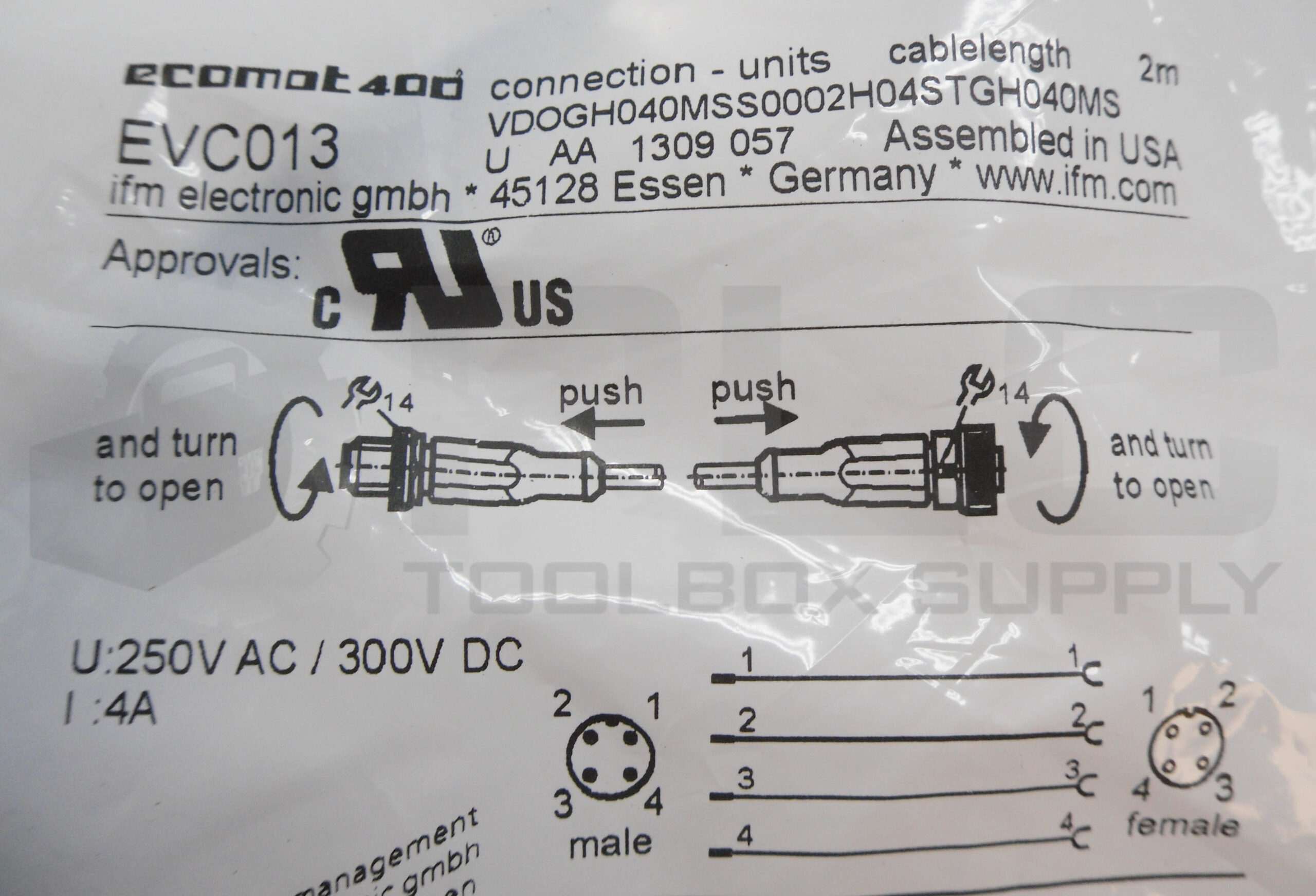 NEW SEALED ECOMAT EVC013 CABLE, 250-300V, 4A