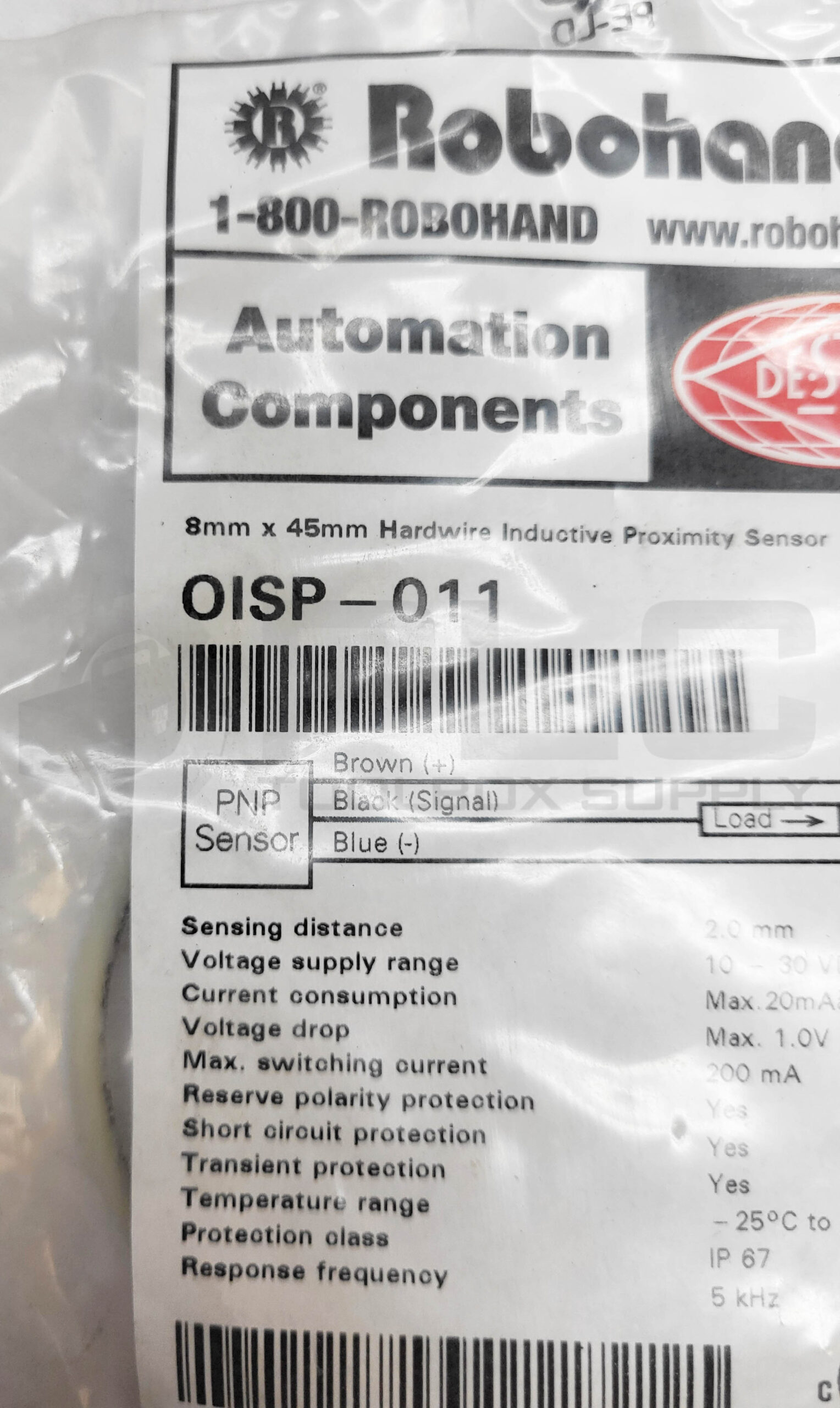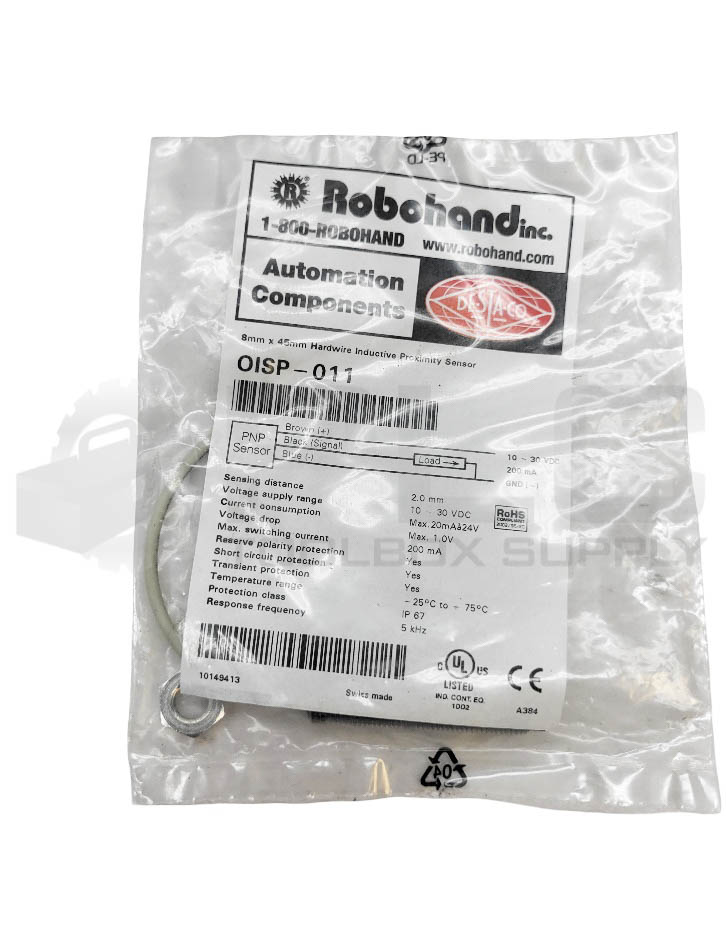 • NEW SEALED ROBOHAND OISP-011 8MMX45MM HARDWIRE INDUCTIVE PROXIMITY SENSOR