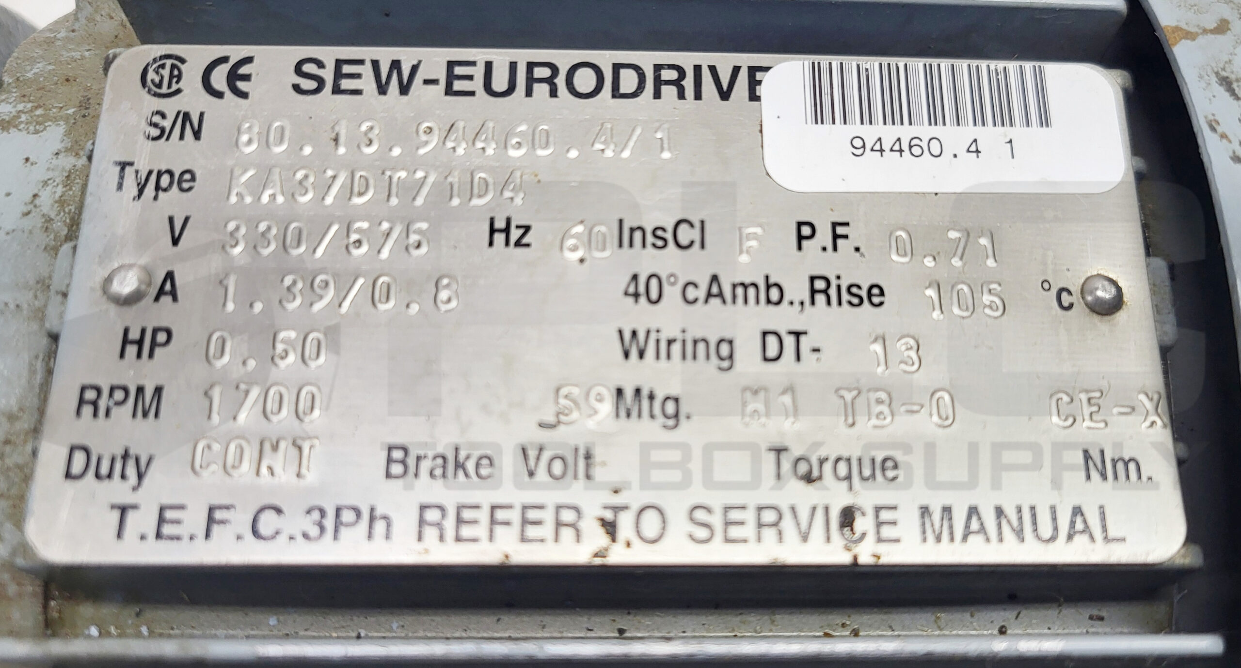 • NEW SEW EURODRIVE KA37DT71D4 GEAR MOTOR 1/2HP 1700RPM RATIO 28.83:1, KA37