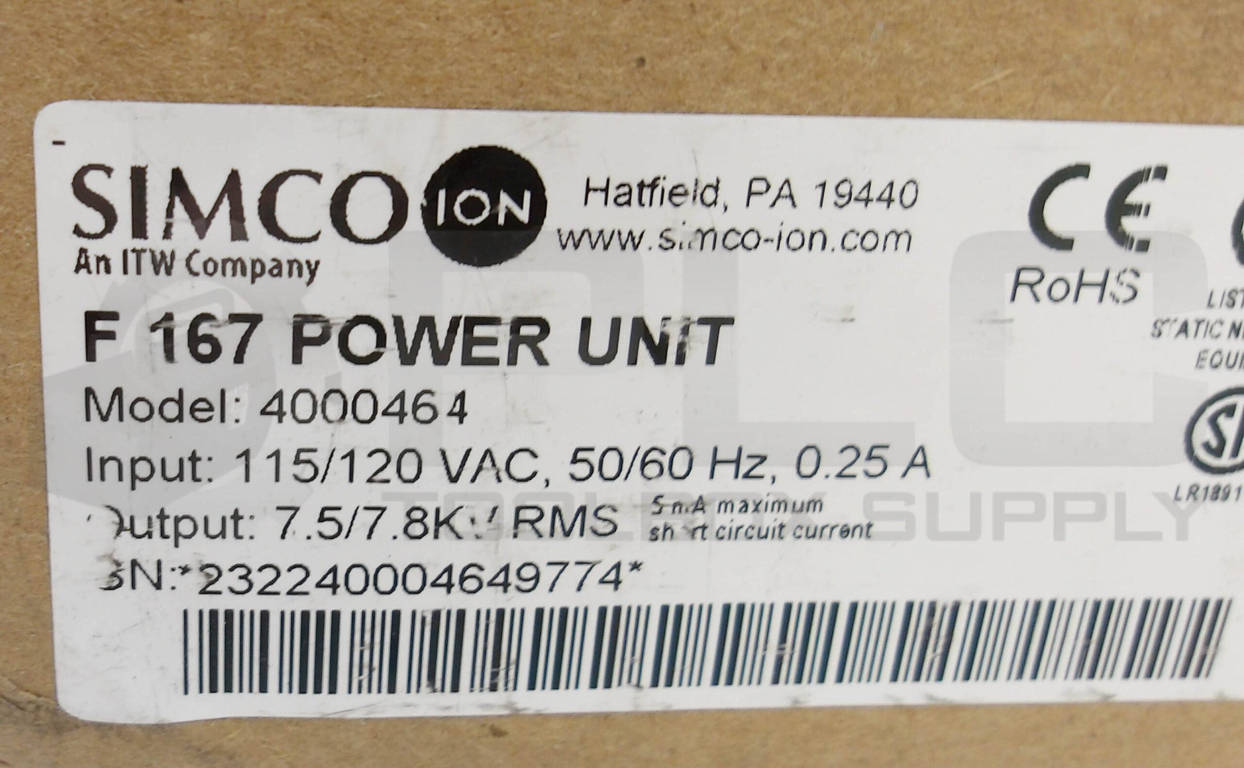 • NEW SIMCO 4000464 F167 POWER SUPPLY 115/120VAC 50/60HZ 0.25A