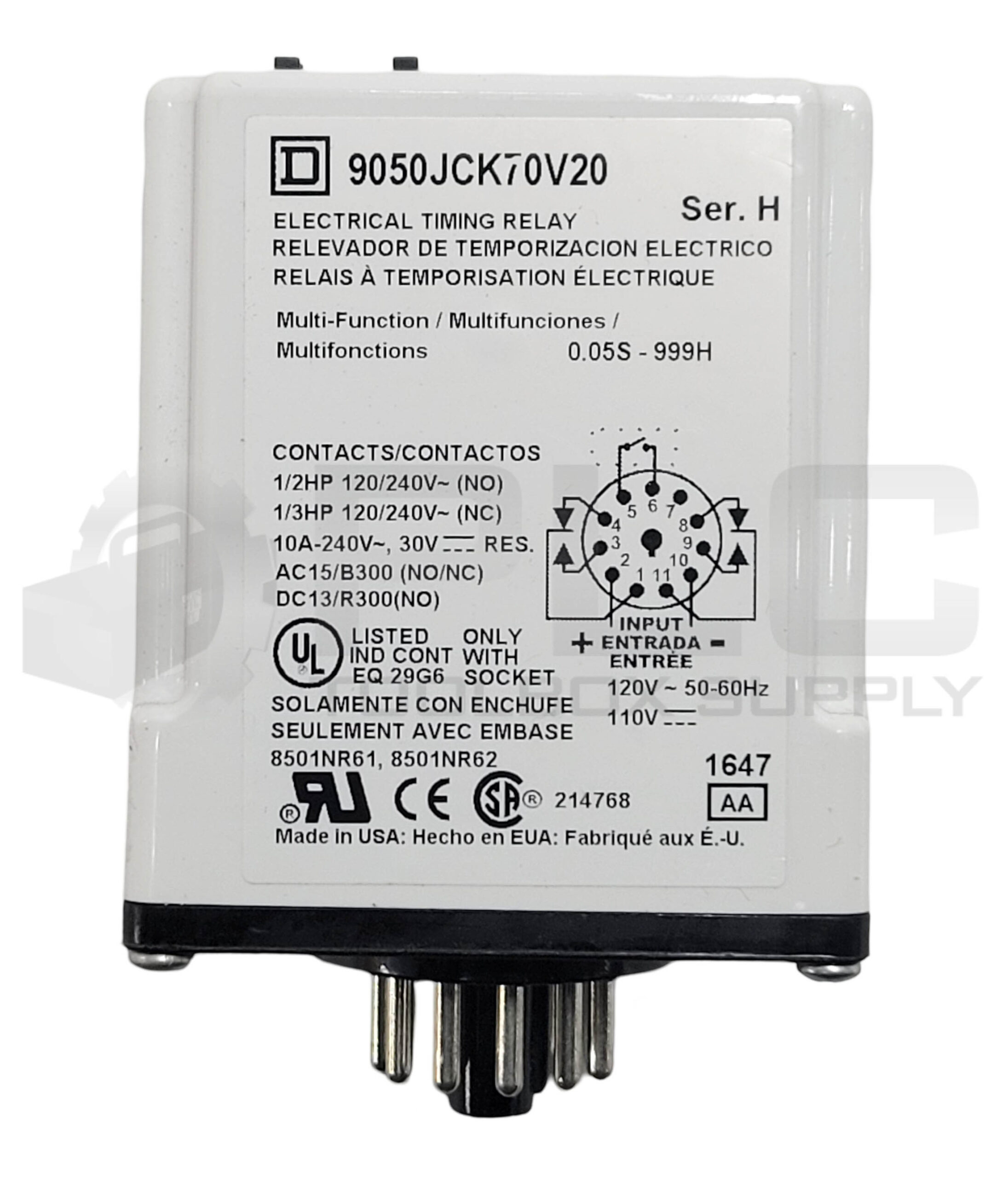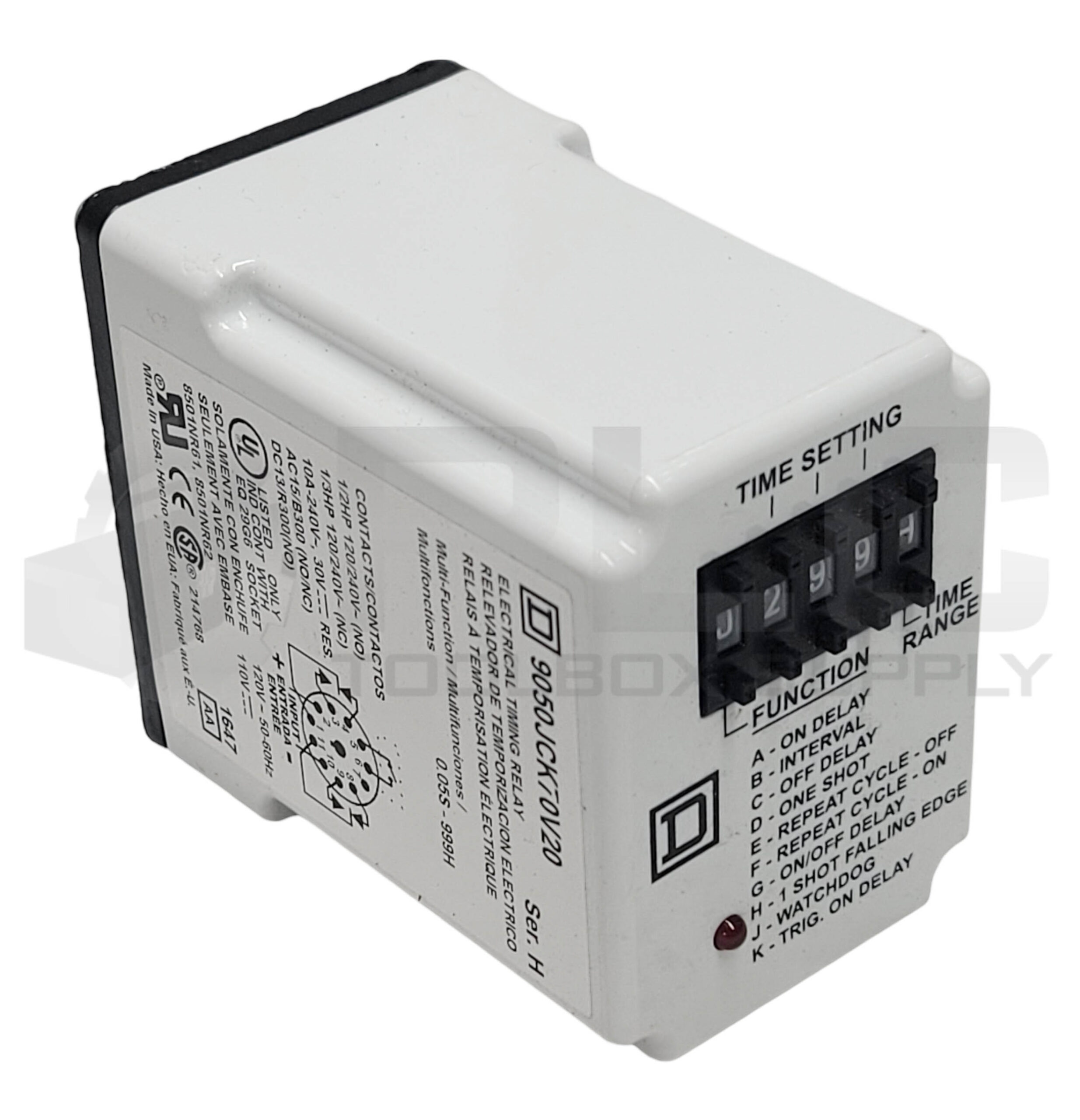 • NEW SQUARE D 9050JCK70V20 /H TIMING RELAY 1/2//1/3HP 120/240V 10A