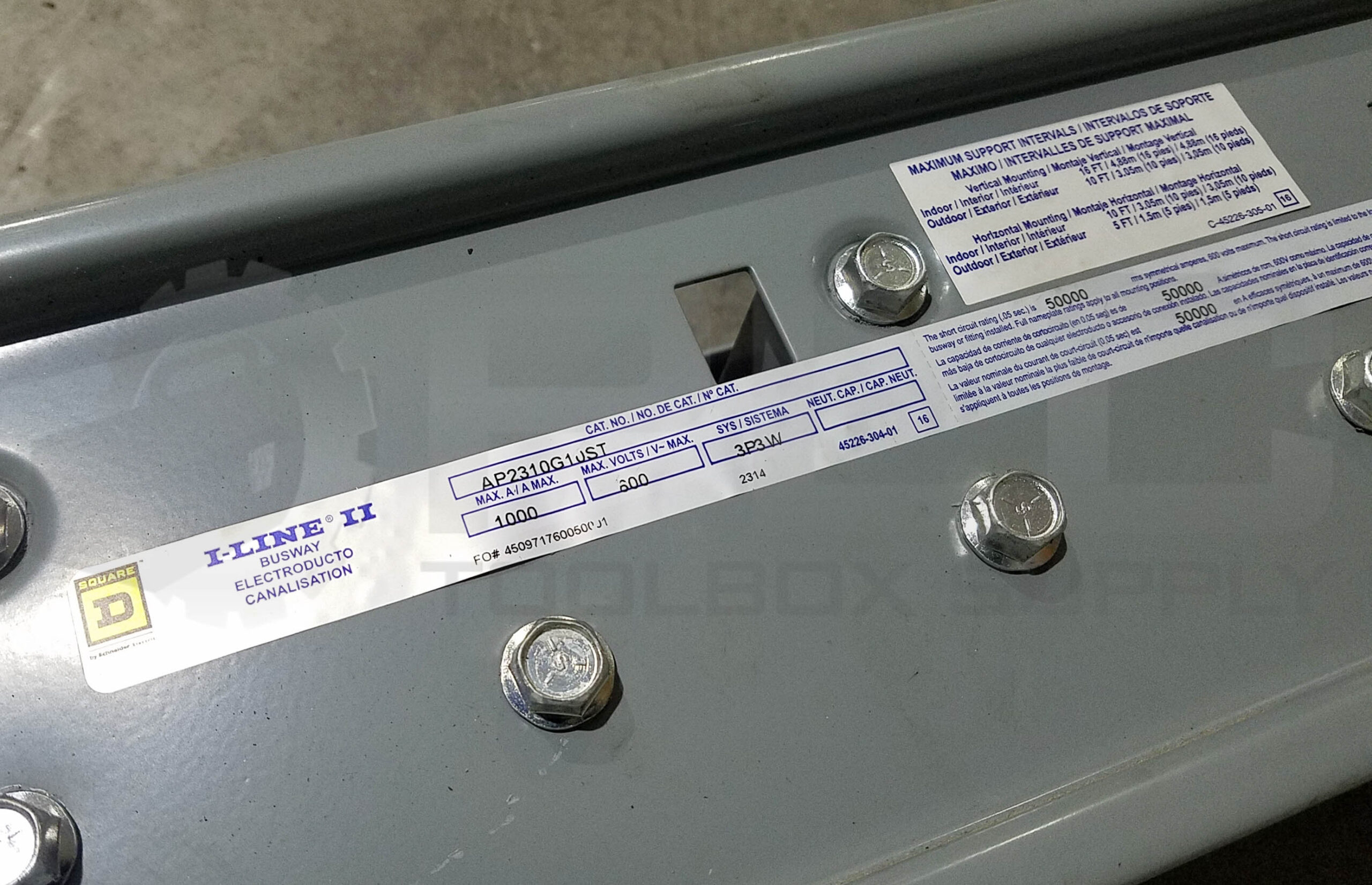 • NEW SQUARE D I-LINE II BUSWAY AP2310G10ST 1000AMP 600V 10FT