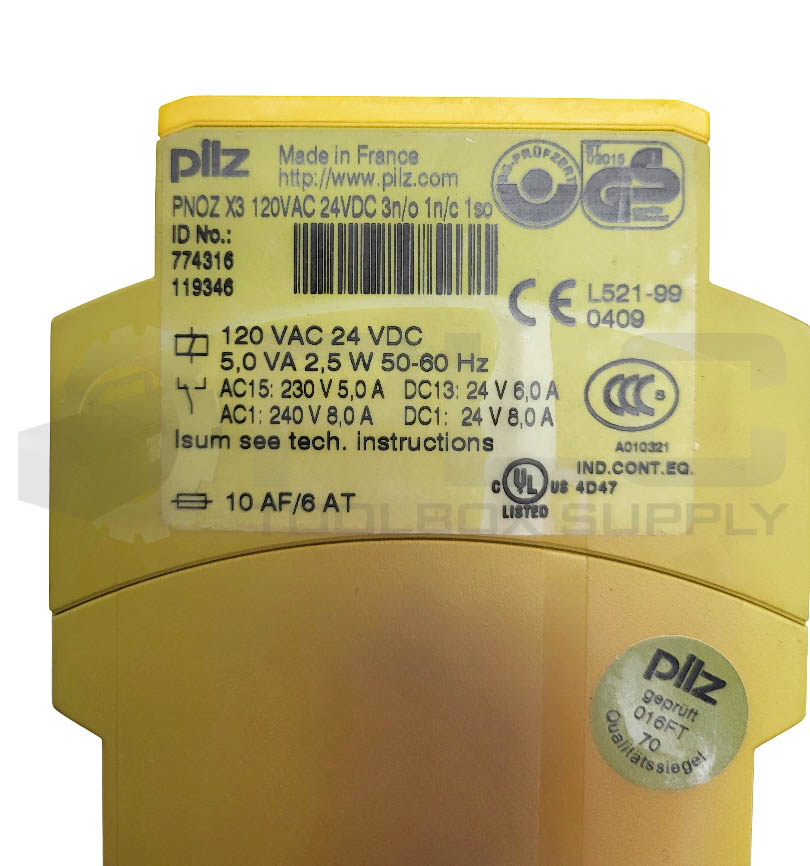 PILZ PN0Z X3 24VAC 24VDC 3N/O 1N/C 1SO SAFETY RELAY 774310 2.5W 120VAC 24VDC