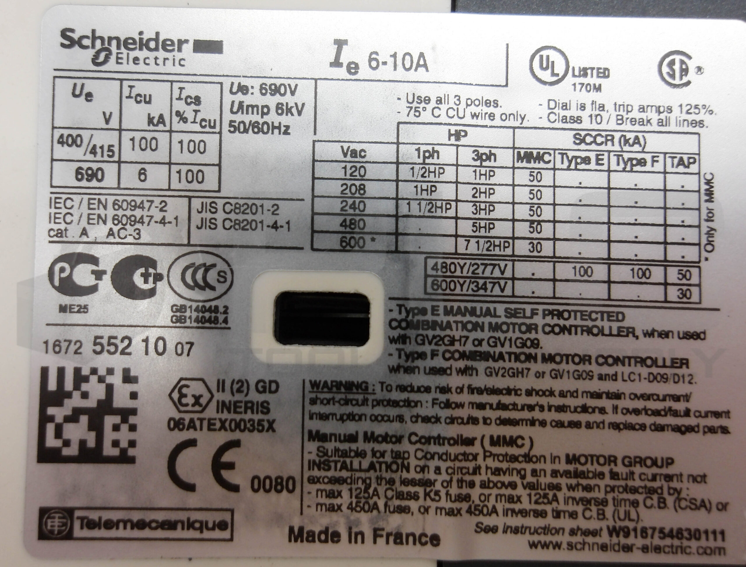 • SCHNEIDER ELECTRIC GV2-P14/6-10A MANUAL STARTER 6/10A