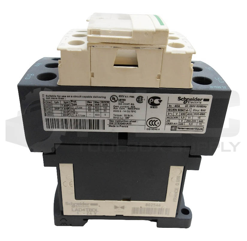 • SCHNEIDER ELECTRIC LC1D25BL CONTACTOR 24VDC 2.4W W/LAD4TBDL 5-24V