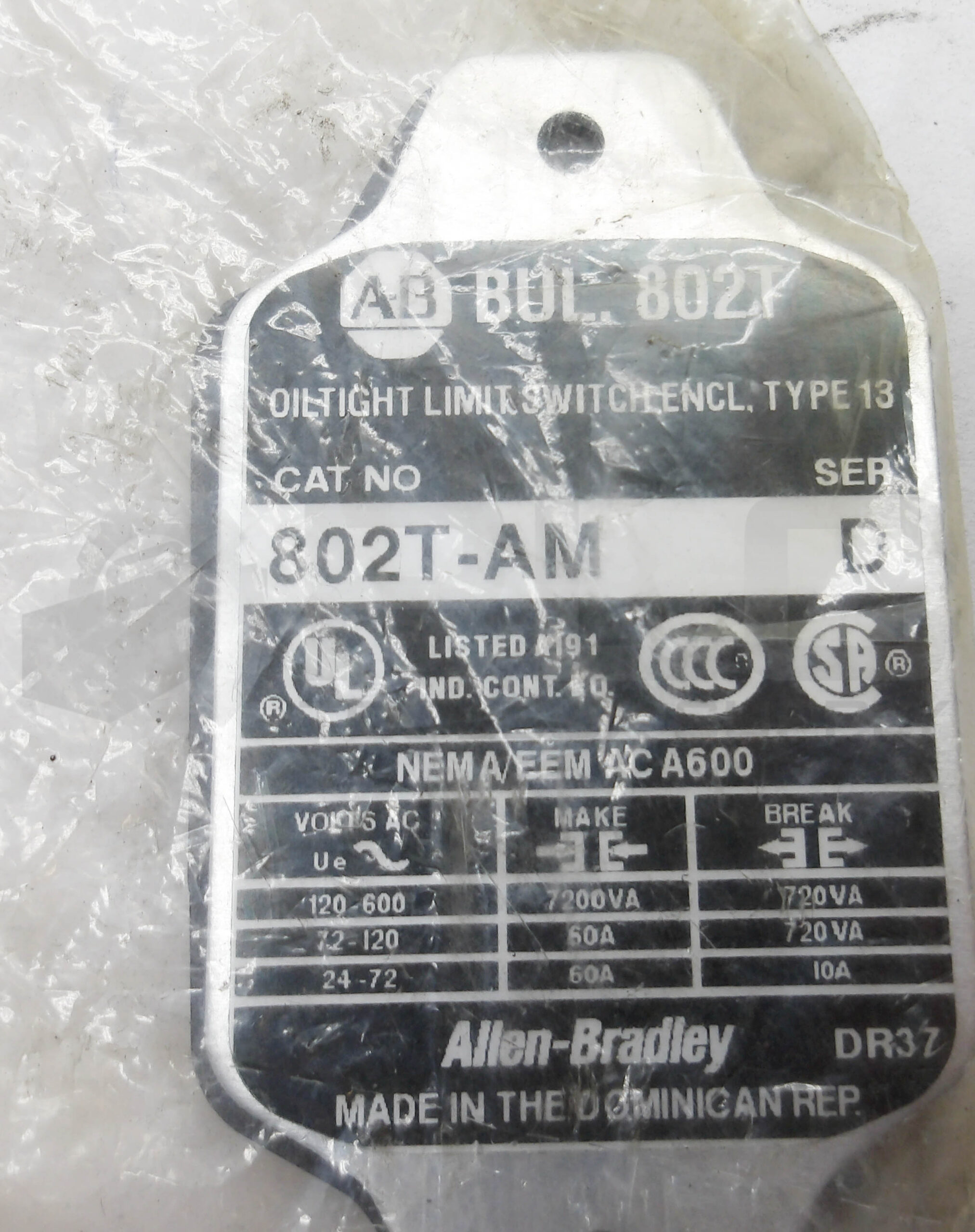 SEALED NEW ALLEN BRADLEY 802B-BZ-2RD-A2 /A SNAP ACTION SWITCH 600VAC 15A 125VDC
