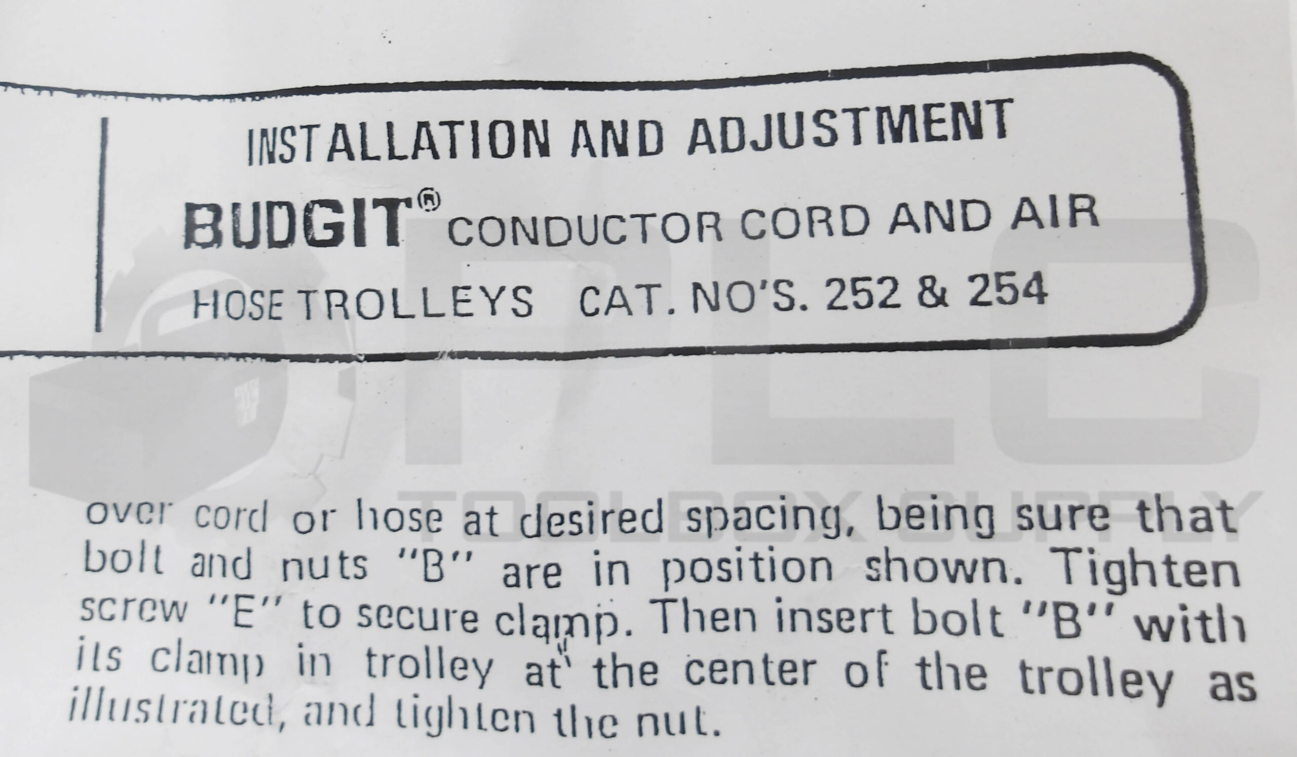 • SEALED NEW BUDGIT 254 CONDUCTOR CORD AND AIR HOSE TROLLEY 252