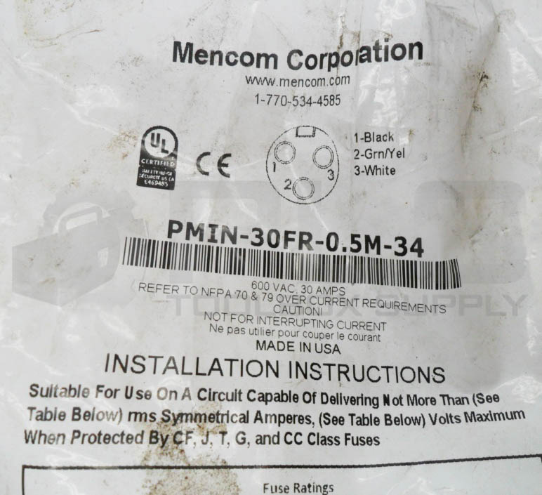 SEALED NEW MENCOM PMIN-30FR-0.5M-34 POWER RECEPTACLE 600VAC 30A *READ*