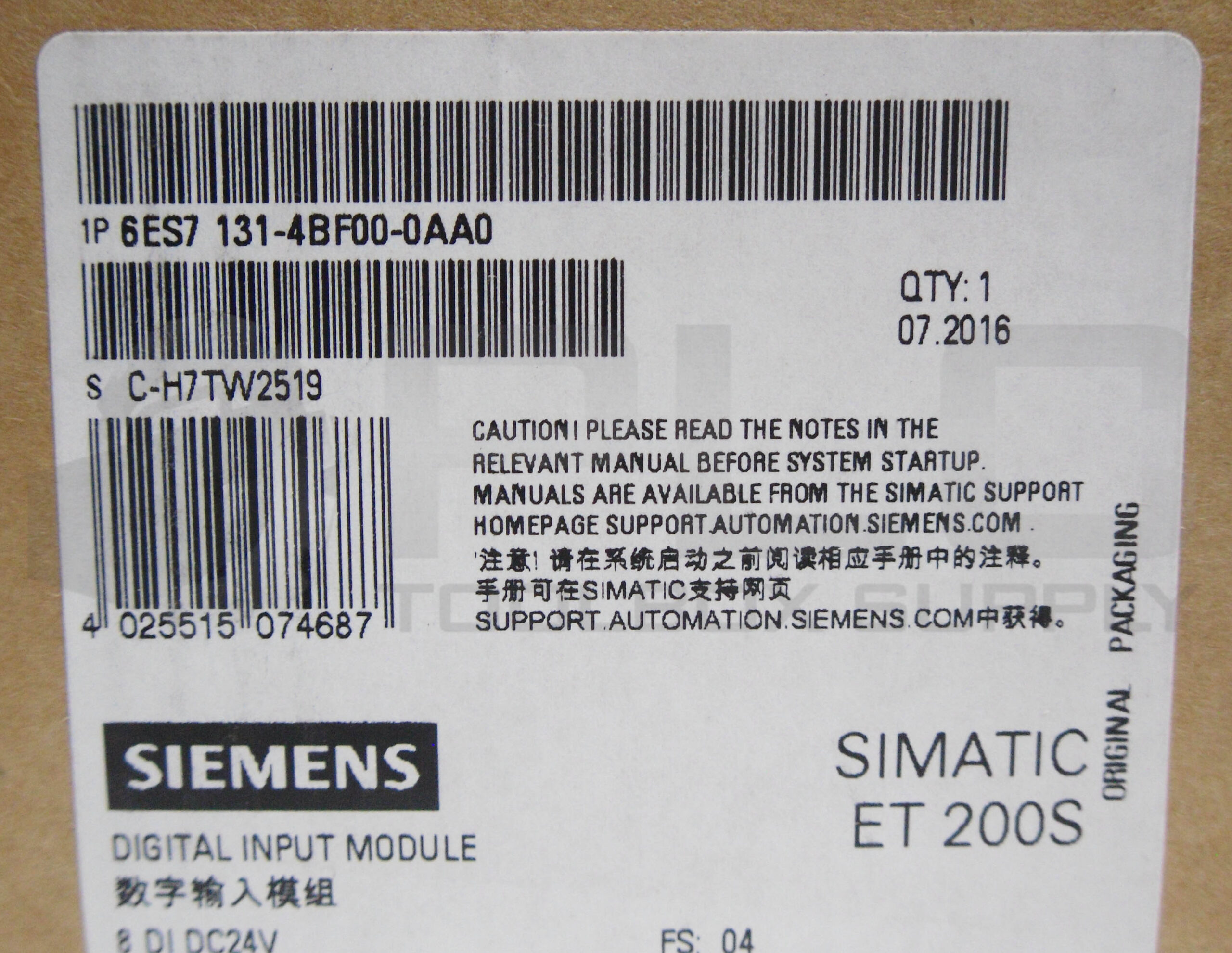 • SEALED NEW SIEMENS 6ES7 131-4BF00-0AA0 DIGITAL INPUT MODULE SIMATIC ET 200S