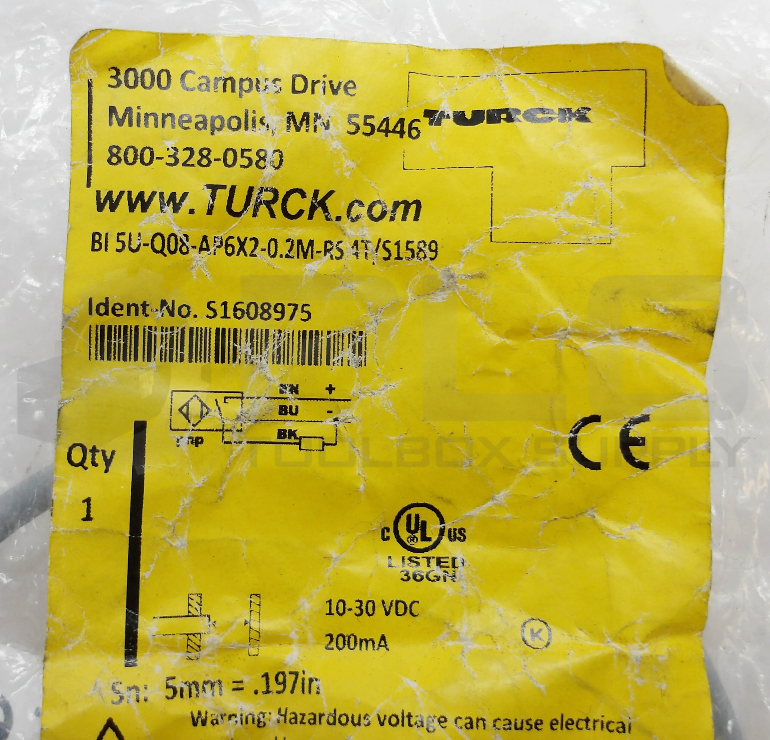 • SEALED NEW TURCK BI 5U-Q08-AP6X2-0.2M-RS 4T/S1589 PROXIMITY SENSOR S1608975