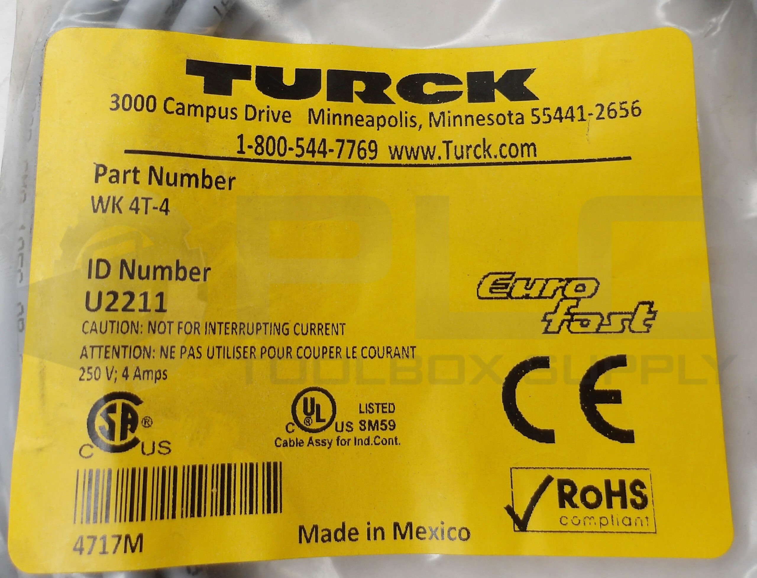 SEALED NEW TURCK WKBV 3T-2 CORDSET RIGHT ANGLE FEMALE 2M U2516-41