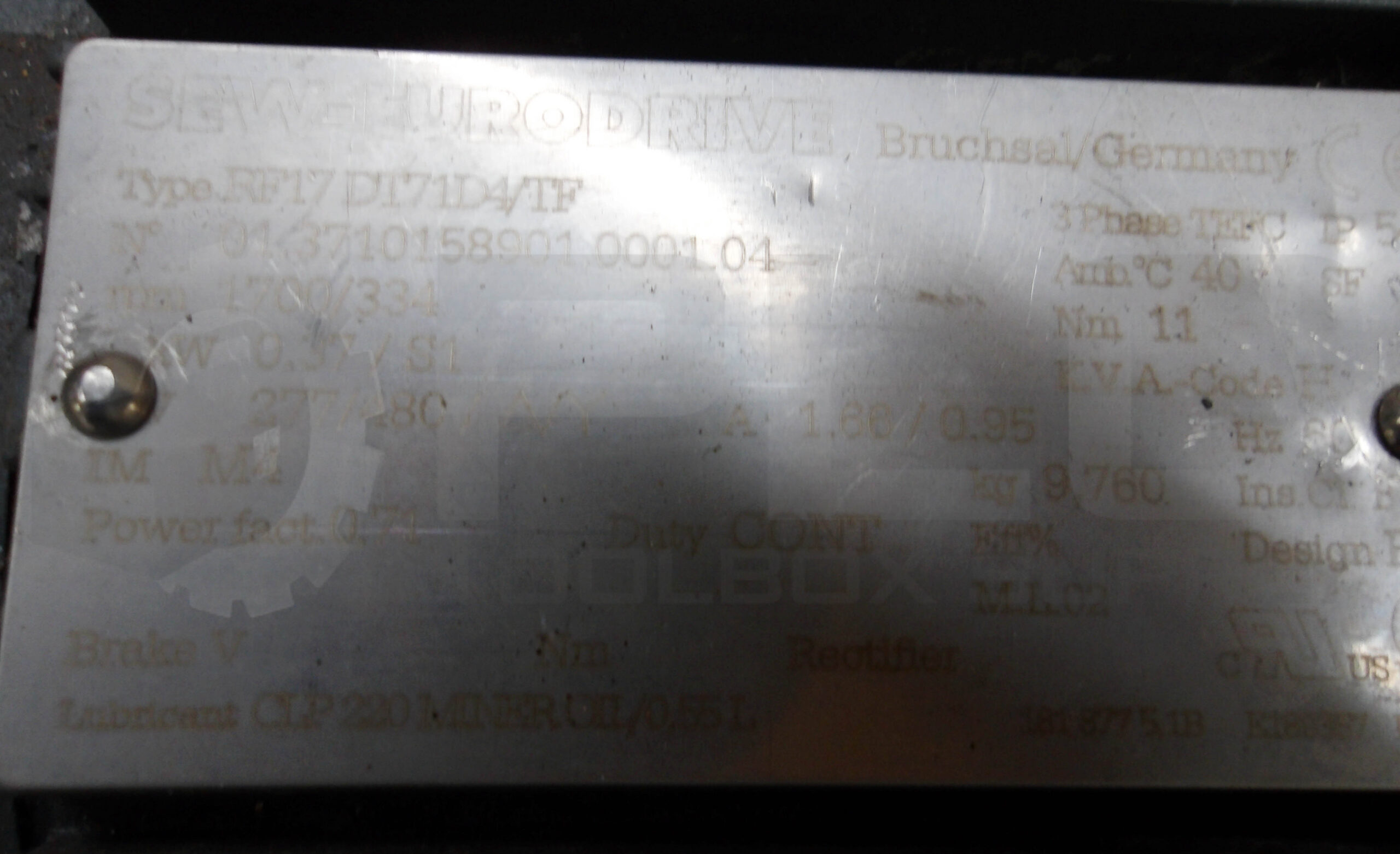 • SEW EURODRIVE RF17 DT71D4/TF GEAR MOTOR 1.66/.95A