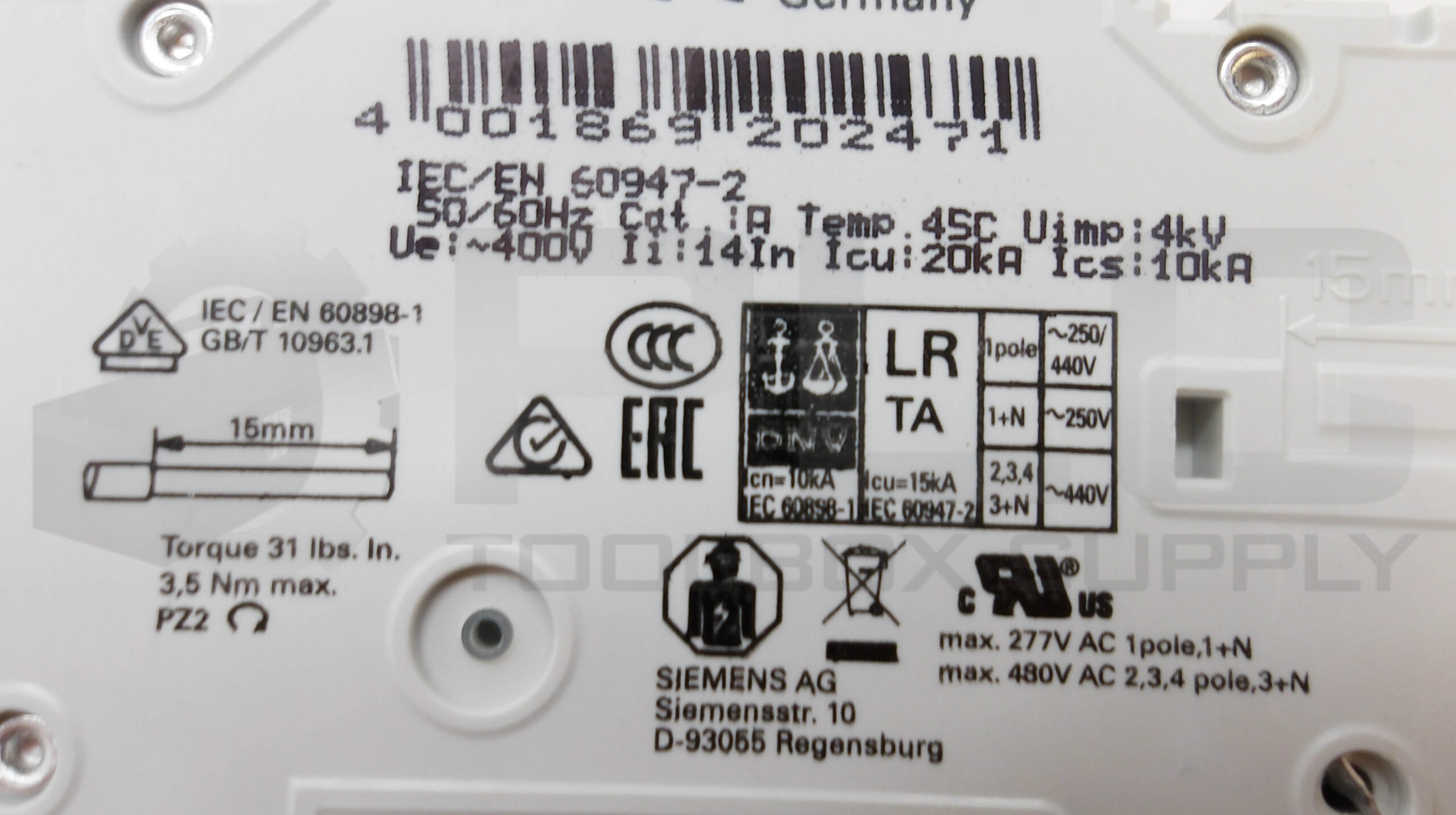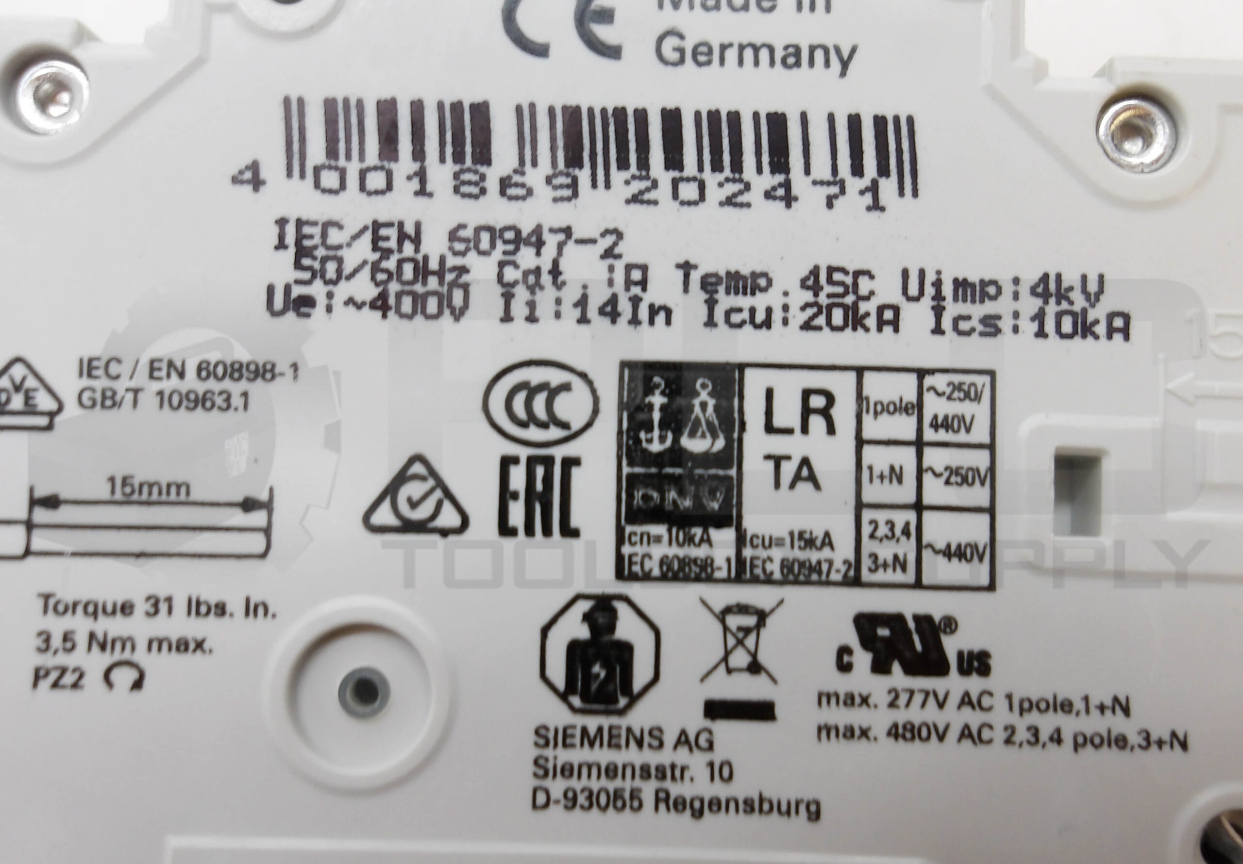 SIEMENS 5SY4320-8 CIRCUIT BREAKER 400V 50/60HZ