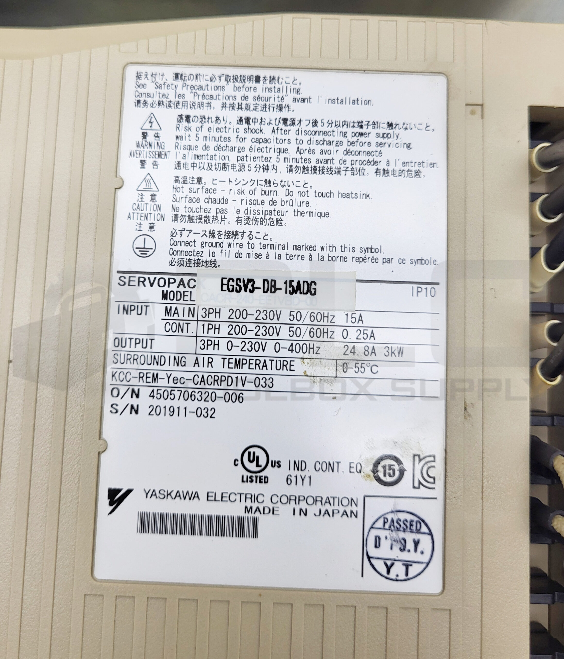 YASKAWA EGSV3-DB-15ADG SERVOPACK 200V 3PH