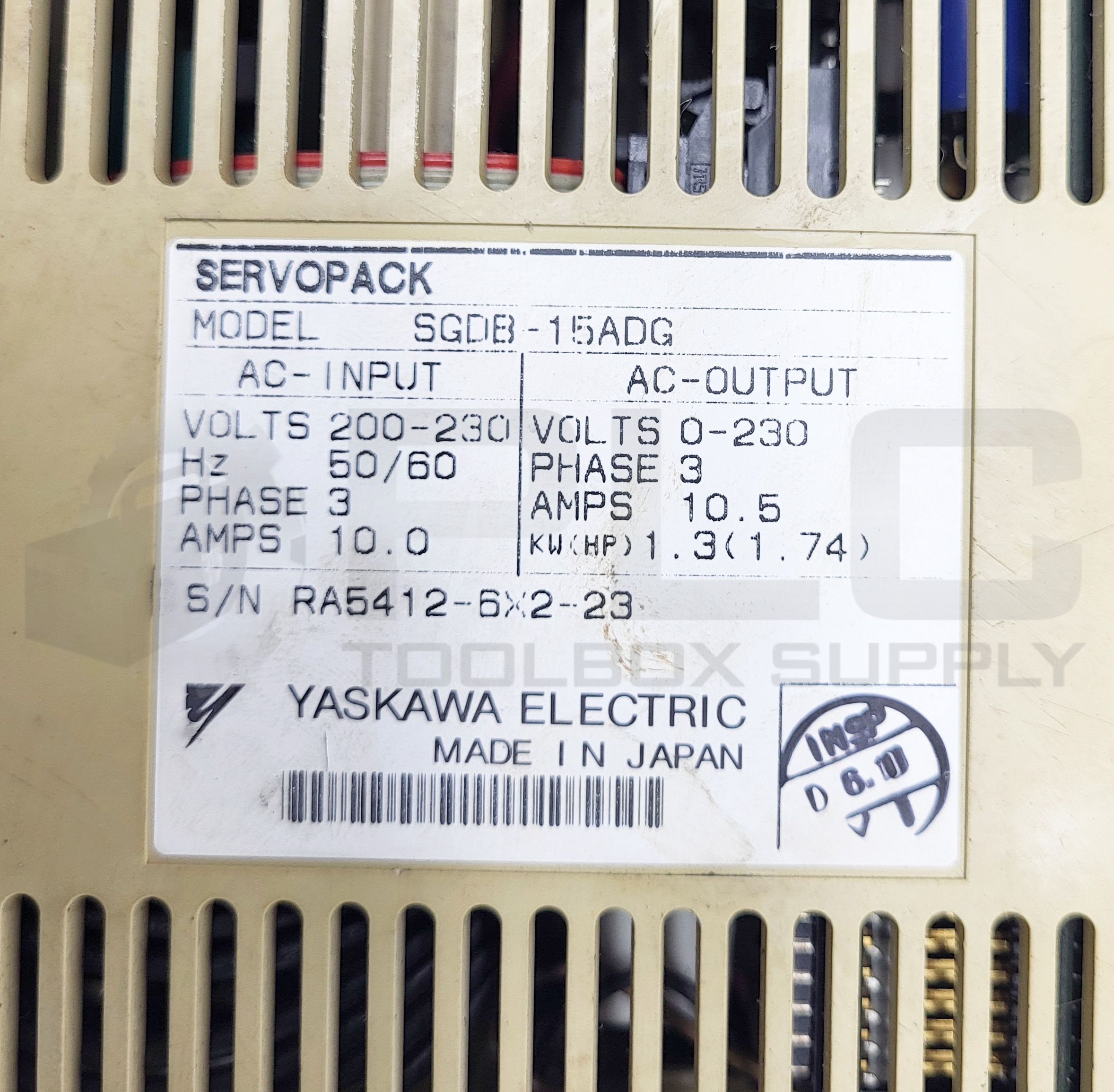 • YASKAWA SGDB-15ADG SERVOPACK 230V 3PH 10.0A *READ*